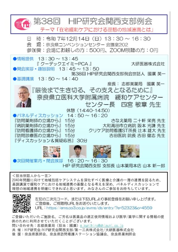 「在宅緩和ケアにおける理想の地域連携とは」12月14日(日)第38回HIP研究会関西支部例会のお知らせ